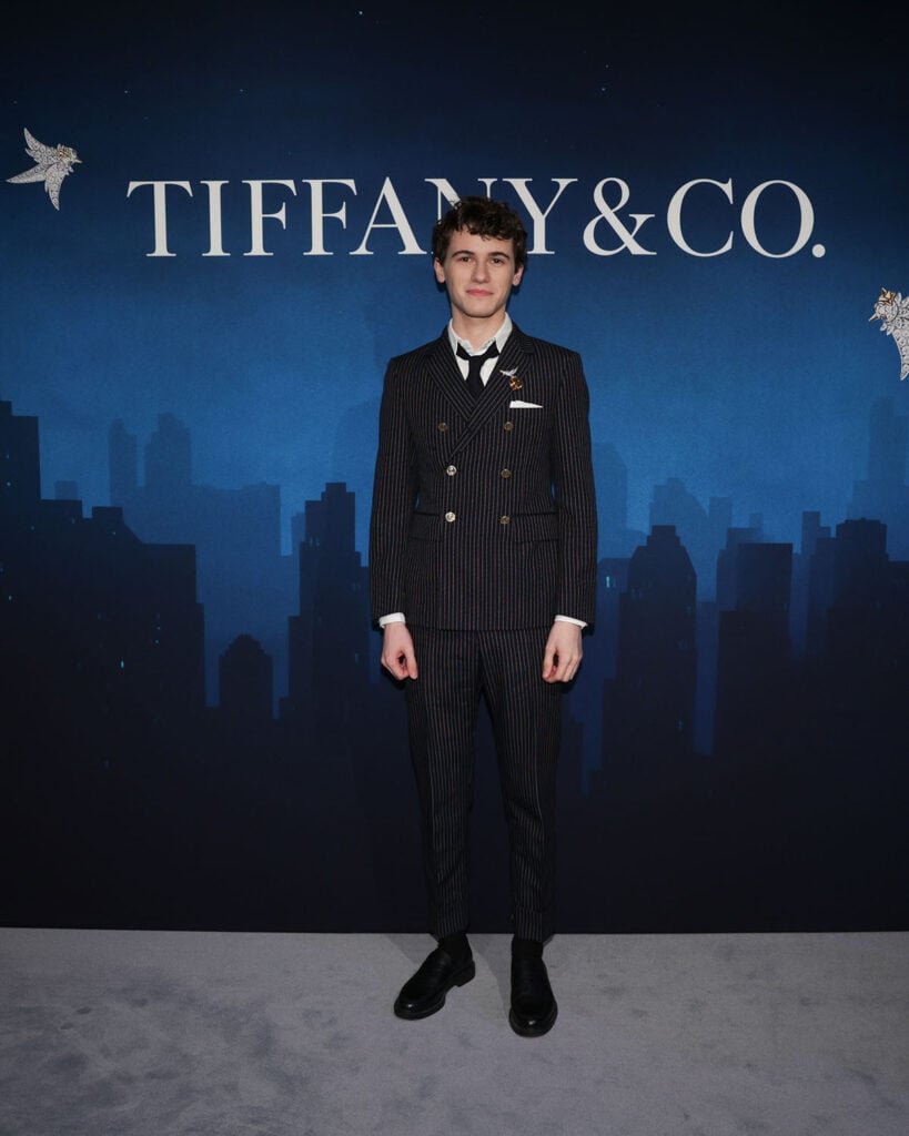 Sam Nivola has been devoted to Dior Spring 2026 ever since it debuted, but for this Tiffany & Co. event he switched things up with a Thom Browne pinstripe suit. Even without the usual school-uniform twist, the boyish charm is still very much there. The finishing touch? A Tiffany & Co. Bird on a Rock brooch.
