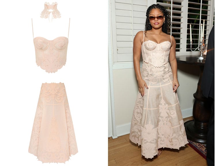 | Who: | Halle Bailey’s Zimmermann Rebellion Filigree Bodice & Rebellion Filigree Midi Skirt |