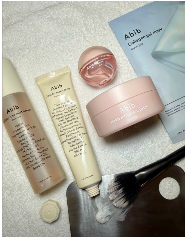 Next came hydration and nourishment, starting with a generous misting of the Abib Jericho Rose Mist Serum Glow Spray, followed by the Abib Jericho Rose Crème Nutrition Tube, massaged into the skin to seal in moisture and create that smooth, cushioned base.