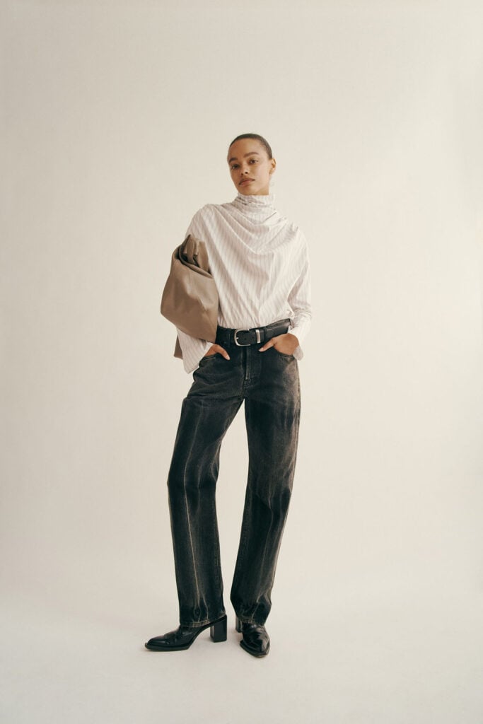 For her IMDb Portrait Studio appearance, Gemma shifted gears. Kallmeyer is an intellectual label with a relaxed sensibility, and this Penelope draped striped top paired with lightly distressed jeans leaned fully into that mood.