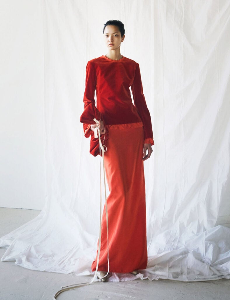 Then there’s the velvet. While it worked in Michaela Coel’s look from the same designer, it feels heavier here on account of the proportions of the top. Even on the model, the balance isn’t quite there, which makes this feel less like a styling/sizing miss and more like the design not fully translating.