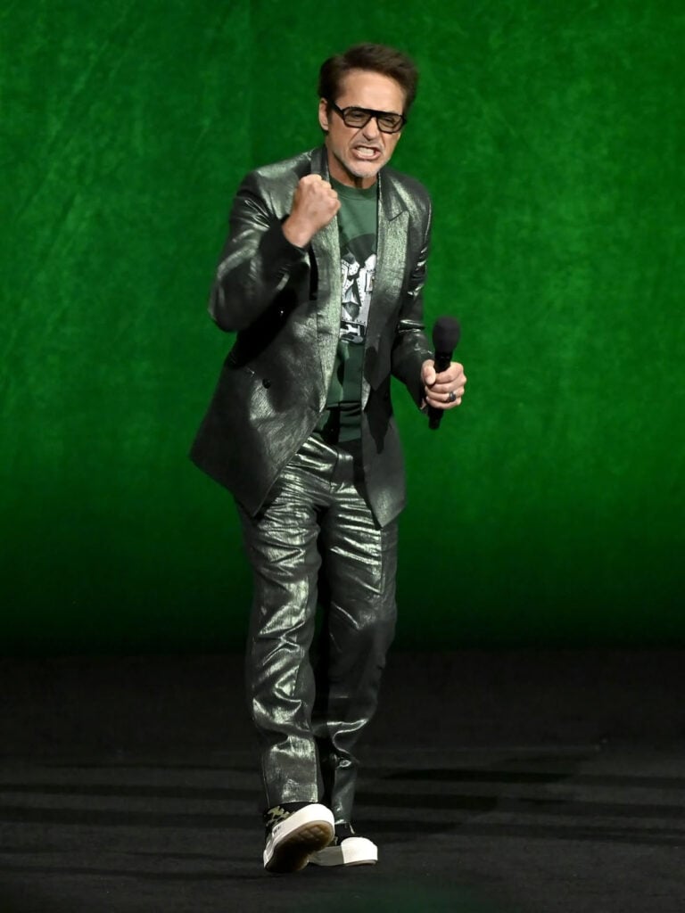 Robert Downey Jr. wore a Paul Smith archival Spring 2016 metallic green double-breasted suit, styled with AMIRI high-top sneakers that matches the step-and-repeat colourway for the film. Few could pull off metallic green tailoring without it veering into novelty, but he makes it feel entirely on-brand, because you know had it not been for the film, this is something he would wear anyway.