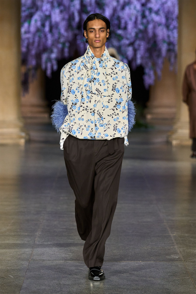 Spring has well and truly sprung, and I have to give credit where it’s due – some men are finally leaning into the shift in season. Charles Melton follows that charge in a floral-print Mithridate Fall 2026 Lavallière shirt, bringing a welcome softness up top while staying true to his signature relaxed, loose-fit trousers. It’s an easy balance, and it works.