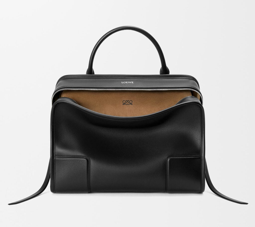 The Loewe Amazona 180 bag is the “something new” here, fitting seamlessly into the overall mood. It’s a subtle upgrade that keeps the outfit current without losing that nostalgic thread.