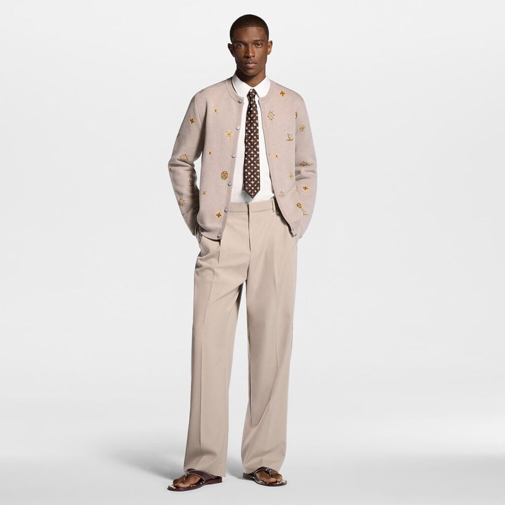 The man clearly has a fondness for a cardigan (his Versace and Bottega Veneta cardigans immediately spring to mind), and this Louis Vuitton beige collarless style was paired with a simple white T-shirt and relaxed beige trousers. Opting for a cardigan over a blazer softens the overall look, making it feel more approachable and in tune with the lighter tone of an animated premiere, while the softer palette and easy silhouette feel like the right call for the occasion – striking a balance between polished, seasonal and laidback,